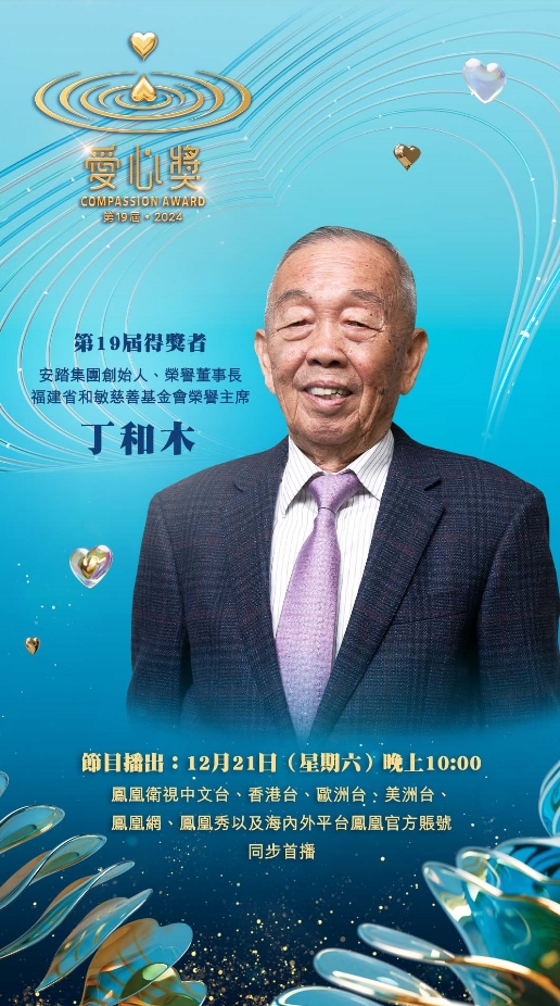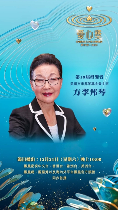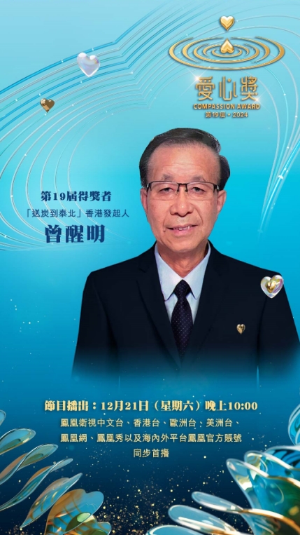 由港澳台湾慈善基金会爱心奖主办,凤凰卫视协办及制作、东西方慈善论坛、陈守仁基金会、许晓晖纪念基金、台湾吴修齐、吴俊杰公益基金会、现代财经基金会协办的第19届·2024爱心奖颁奖典礼,日前在香港凤凰卫视大埔总部举行,典礼的录影实况将于2024年12月21日(周六)晚上10:00于凤凰卫视中文台、香港台、欧洲台、美洲台、凤凰网、凤凰秀以及海内外平台凤凰官方账号同步首播。