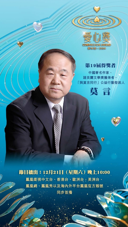 历经19个春秋之后,第19届·2024爱心奖选出9名得奖者:中国内地莫言、丁和木、富士康科技集团、潘江雪;香港纪文凤、曾醒明;台湾法鼓山慈善基金会、肝病防治学术基金会;海外方李邦琴。获奖名单揭晓后,全球华人媒体广泛报道。