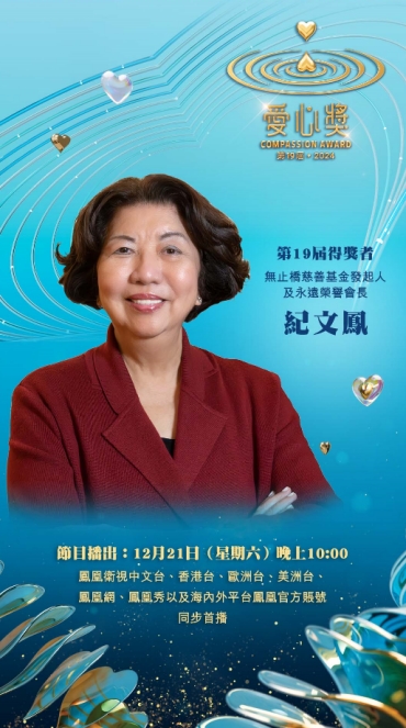 由港澳台湾慈善基金会爱心奖主办,凤凰卫视协办及制作、东西方慈善论坛、陈守仁基金会、许晓晖纪念基金、台湾吴修齐、吴俊杰公益基金会、现代财经基金会协办的第19届·2024爱心奖颁奖典礼,日前在香港凤凰卫视大埔总部举行,典礼的录影实况将于2024年12月21日(周六)晚上10:00于凤凰卫视中文台、香港台、欧洲台、美洲台、凤凰网、凤凰秀以及海内外平台凤凰官方账号同步首播。